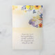 Die inspirierende Grußkarte zeigt ein einzigartiges Blumendesign mit gelben, orangefarbenen, lila und blauen Blumen und Blätter. Es enthält Bible Verse Ester 4:14, "Und wer weiß, ob du vielleicht für so eine Zeit wie diese ins Königreich gekommen bist?"
