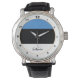 Uhr, Klassische Damenuhr mit schwarzen Lederarmband