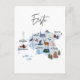 Estonia travel map with popular tourist cities, birds, animals, attractions, and culture. White background.