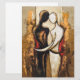 Zwei abstrakte menschliche Formen, eine dunkle und eine andere, verflechten sich in einer warmen, erdigen Palette. Der Hintergrund zeichnet sich durch dynamische Wirbel und Texturen aus, die das Gefühl von Bewegung und Verbindung verstärken.