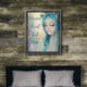 Träume, süßes Mädchen, Traum. Hübsches ruhiges Mädchen mit Blume in ihrem blauen Haar. Schöne blaue Augen mit blasser Haut märchenhafter Fantasiekunst.