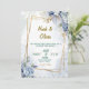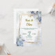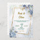 Mit dieser eleganten Hochzeitseinladung kündigen Sie Ihren besonderen Tag mit einem zarten Rahmen von blauen und weißen Blumen im Aquarellstil und mit feinen Golddetails. Die sanften Farbtöne und das botanische Design erinnern an ein romantisches und stilvolles Ambiente, das sich perfekt für ein unvergessliches Fest eignet. Der zentrale weiße Raum bietet viel Platz für Ihre personalisierten Hochzeitsdetails.