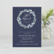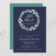 Eine moderne Christliche Babydusche, die sich perfekt für die Erwartung eines lang erwarteten Kindes eignet. Dieses Design zeigt die Phrase "kleines Wunder" in weißem handgeschriebenem Schriftart, die Bibelverse "für dieses Kind wir beteten" 1. Samuel 1:27, umrahmt von einem blauen grünen Eukalyptuskranz auf einem massiven marineblauen Hintergrund. Die Rückseite ist in aquamarin grün.