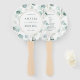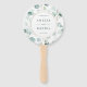 Dieser Fan der Hochzeitszeremonie zeigt einen bemalten Aquarell Eukalyptus und botanisch grüne Blätter mit einem goldenen Rahmen. Klicken Sie für eine erweiterte Anpassung dieses Designs auf Weitere Links anpassen, um Schriftart, Größe und Farbe zu ändern.