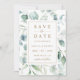 Diese Hochzeit speichern Sie das Datum Einladung mit gemalten Aquarell Eukalyptus und botanisch grünen Blätter mit einem goldenen Rechteck Rahmen.