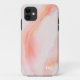 Ein wunderschönes feminines iPhone-Gehäuse mit ätherischen Wirbel aus Rosa, Gelb und Weiß aus Marmor macht das Ganze zu einem gelungenen Erlebnis. Personalisieren Sie die Textvorlage mit Ihren Monogramm-Initialen für einen benutzerdefinierten Fall mit stilvollem Anklang.
