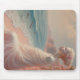 faszinierende Fantasiekunst mit einer ätherischen Frau, die in fließendem Gewebe eingezogen ist, friedlich auf einem weichen rosa Strand mit sanften Wellen und schwimmenden Fischen in der Luft sitzend. Umgeben von blühenden Blume und Pastelltönen strahlt diese surreale Küstenlandschaft Ruhe und Wunder aus. Ideal für Fantasy-Liebhaber, romantische Träume und sanfte surreale Kunst - ideal für Drucke, Wanddekoration und elegantes Accessoire.