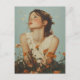 Ein traumhaftes, malerisches Porträt einer jungen, aufblitzenden Frau, umgeben von Wildblumen mit warmer, sanfter Beleuchtung und einer zarten Ästhetik.