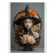 Ein atemberaubendes Kunstwerk aus Keramik, das als Hochrelief- oder Oberkörperskulptur präsentiert wird und mit außergewöhnlichen Details und Kunstwerken gefertigt wurde. Die zentrale Figur ist ein anmutiges junges Mädchen mit fein gemeißelten Details, die in glatter Matte und satinierter Verglasung für eine lebendige Präsenz fertig gestellt sind. Ihr fließendes braunes Haar ist reich strukturiert und sorgfältig glasiert, während sie einen hohen, spitzen Hut trägt, der mit einer großen Keramik orange Blume und Herbst Blätter schmückt. Verzierte Schmuckstücke, darunter geschichtete Halsketten und Teardrop-Ohrringe, Glitzern mit türkisfarbenen und antiken Goldverglasungen. Vor ihren Erholungen eine fein geschnitzte Keramik lotus Blume in Blüte, in weichen Pastellfarben oder mystischen Glanzlichtungen gerendert. Ein kreisförmiges Mondmotiv umrahmt die Komposition, umgeben von wirbelnden Herbstblättern und Zweigen, die alle handbemalt sind in warmen, erdigen Tönen. Das Stück verbindet Eleganz und saisonale Schönheit, zeigt meisterhafte Skulpturen, aufwändige Verglasung und ein ausgeklügeltes Texturenspiel unter beruflicher Studiobeleuchtung.
