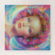 Ein atemberaubendes Fantasy-Porträt einer Frau mit einer lebhaften Blume Krone und leuchtenden Pastelltönen. Ihre leuchtend blauen Augen und ihr sanfter Ausdruck werden durch einen zarten Schmetterling und eine wirbelnde Regenbogenaura ergänzt. Diese traumhafte Abbildung verbindet Schönheit, Natur und surreale Eleganz.