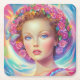 Ein atemberaubendes Fantasy-Porträt einer Frau mit einer lebhaften Blume Krone und leuchtenden Pastelltönen. Ihre leuchtend blauen Augen und ihr sanfter Ausdruck werden durch einen zarten Schmetterling und eine wirbelnde Regenbogenaura ergänzt. Diese traumhafte Abbildung verbindet Schönheit, Natur und surreale Eleganz.