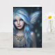 Leere Karte. Blue Fairy. Digitale Kunst, die eine wunderschöne ätherische magische Fee mit leuchtend blauen Augen und Haaren darstellt.