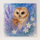 Eine lebendige Aquarellbilder einer verträumten Eule, umgeben von ätherischen Lavendeln und nachts blühendem Jasmin.