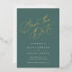 Elegante Hochzeit speichern Sie die Dattelkarten in weichen Moos grün Funktion "Save the Date" in luxuriösen Rose goldenen Folie Schriftzeichen oben. Personalisieren Sie Ihre Hochzeitsdetails in klassischer, weicher Schrift.