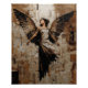 This artwork showcases an elegant angel rendered in a richly layered mixed-media style. The wide, feathered wings blend into an abstract collage-like background of warm beige, sepia, and textured brushstrokes. The figure’s calm, graceful posture and subtle halo add a spiritual, uplifting tone.