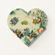 Das Bild zeigt ein stilisiertes, minimalistisches Muster, das üppige grüne Blätter und saftige orangefarbene Früchte vereint, die auf einem sanften, welligen Hintergrund ruhen. Zwei elegante Tempelstrukturen ragen harmonisch aus der Natur hervor, strahlen Ruhe und spirituelle Tiefe aus. Die Farbpalette aus Grün, Orange und Creme vermittelt Frische und Gelassenheit, einladend zu Kontemplation und innerem Frieden.