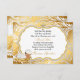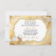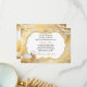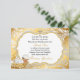 Ein wunderschöner kleiner Junge in seinem taufenden Anzug und goldene Kreuzhalskette, der auf einem goldenen Kissen schläft. Der Einladungshintergrund ist Gold mit Silberrollen und Kreuzverzierungen. Die Rückseite ist mit einem goldenen Kreuz auf einem weißen Band geschmückt.