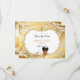 Wunderschönes Baby in ihrem Taufkleid und goldene Kreuzhalskette auf einem goldenen Kissen schlafend. Hintergrund ist Gold mit silberner Schriftrolle und Kreuzverzierung. Die Rückseite ist mit weißem Satinband und Kreuz geschmückt.