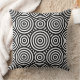 Ein ethnisch schwarzes Kreismuster schmückt ein quadratisches weißes Kissen. Passen Sie die Kissenfarbe an, um ein Geschenk für Ihren Freund zu machen. Für Anfragen zu kundenspezifischen Designs, kontaktieren Sie uns unter https://t.me/KBMD3signs_chat.