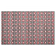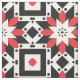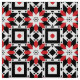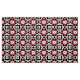 Modernes abstraktes Stoffdesign mit nahtlosem Muster aus geometrischen Formen in Rot, Schwarz und Weiß.
