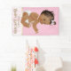 Ethnisch Mädchen Duschbanner mit bezauberndem Baby mit Kruffelhose und Perlen auf einem schönen rosa und goldenen Hintergrund. Dieses rosa und goldene Baby-Duschbanner lässt sich leicht mit Ihrem Schriftart in der gewünschten Farbe und dem gewünschten Wortlaut anpassen. Sie können auch die Hintergrundfarbe ändern.