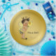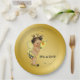 Bienenstudiose-Teller mit bezauberndem Ethnic-Baby mit niedlichem Hummeloutfit auf einem goldenen Hintergrund mit fliegenden Hummeln. Sie können Text hinzufügen, um diese schwarzen und goldenen Bienenduschpapier-Teller zu personalisieren, und Sie können den goldenen Hintergrund entfernen, um die Farbe Ihrer Wahl hinzuzufügen.
