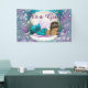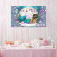 Ethnische Meerjungfrau Babydusche Banner mit bezauberndem Hispanic Indianerprinzessin Mermaid Baby Girl in einer hübschen Perlenfarben Muschel mit Perlen und Juwelen auf einem lila und aquamarinen Blau unter dem Meeresgrund. Dieses niedliche Mermaid Baby Duschbanner können Sie ganz einfach an Ihre Veranstaltung anpassen, indem Sie den gewünschten Text hinzufügen. Dies ist ein gedrucktes Design ohne echten Glitzer, Perlen, Juwelen, etc.