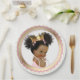 Afrikanisch-amerikanische Prinzessin Baby-Duschpapier-Teller mit bezauberndem afrikanisch-amerikanisches Baby-Mädchen auf einem schönen rosa und goldenen Hintergrund. Diese bezaubernden ethnischen Baby-Girl-Teller sind leicht mit Texten versehen und können auch die Hintergrundfarbe ändern.