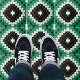 Moderne Keramik Fliesen mit geometrischen Formen in smaragdgrün, schwarz und weiß.