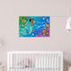 Meerjungfrau-Babyduschplakat mit bezauberndem ethnischem Babymädchen und hübschem Goldfisch und Seepferd auf einem schönen rosa, grünen und blauen Untergrund. Dieses hübsche Mermaid-Poster kann mit Ihrem Schriftart im gewünschten Stil und in der gewünschten Farbe angepasst werden, oder Sie können den Beispieltext löschen und einen Rahmen und eine Matte für ein schönes Kinderzimmer oder einen Kinderraum hinzufügen.