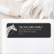 Eine Vintage Darstellung eines Pferdes mit Zügen wird mit einem modernen Textstyling für Ihren Namen und Ihre Adresse auf diesem Reittier-Thema Rücksendeetikett ergänzt. Set auf dunkelgrauem Hintergrund. Koordination von Visitenkarten, die für dieses Design zur Verfügung stehen. © 1201AM CREATIVE