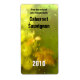 Ein Etikett für Zuhause-Hersteller mit einem Foto aus einem Haufen grüner Trauben auf einer Weinrebe mit bronzefarbenen Blätter überlagert mit einer gerenderten Abbildung eines getönten Weißweins mit flüssigen Tröpfchen.