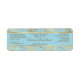 Ein Etikett für Seife- und Badeprodukte mit hellblau und Imitat goldfarbener Folie.