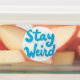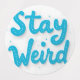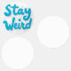 Ein Set von großen, wasserdichten Etiketten mit "BLEIBE WEIRD" in blauer Schrift, ideal für Laptops, Wasserflaschen oder Geschenke.