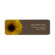 Ein Adressetikett mit einem Bild einer gelben Sonnenblume, verlassen über einem braunen Hintergrund. Personalisieren Sie den Text mit Ihrem Namen und Ihrer Adresse.