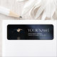 Elegantes Rücksendelabel mit einem fliegenden Pelican im ersten Licht des Morgens, das im dunklen Wasser nachts reflektiert wird.