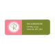 Niedliche, rosa und grüne Adressetiketten mit individuellem Monogramm.