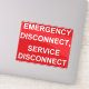 eine NOTFALLDISCONNECT, SERVICE DISCONNECT-Aufkleber für Elektriker, die zur Erfüllung der Anforderungen von Artikel 230.85 Buchstabe E Nummern 1 und 2 des nationalen Stromkodexes von 2023 verwendet werden soll.
