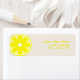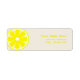 Ein Adressetikett, das eine Abbildung eines Zitronenschnitts verlassen zeigt. Personalisieren Sie den gelben Text mit Ihrem Namen und Ihrer Adresse.