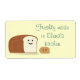 Fügen Sie diese Etiketten zu Ihren frisch gebackenen Waren für eine wunderbare persönliche Touch zu all Ihren Geschenken oder sogar Ihrem Geschäft. Ein köstlicher Laib Brot und Brötchen-Design mit viel Raum für eine persönliche Note. Original-Kunstwerk von Night Owl's Menagerie, 2010.