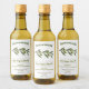 Ein Flaschenetikett für das hausgemachte Olivenöl, um es zu verkaufen oder anzubieten (z.B. bei einer Hochzeit). Es kommt mit einer Illustration eines Olivenzweigs.