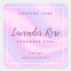 Präzise Produktetikette mit einem dünnen weißen oder benutzerdefinierten Farbrahmen auf einem hellvioletten und rosa sanften, marmorierten Hintergrund. Der Produktname wird in einer lustigen, skurrilen Schrift gedruckt. Schriften und Schriftfarben sind anpassbar. Verschieben und verändern von Elementen und Text mit dem Designwerkzeug.