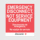Eine NOTFALLDISCONNECT, NICHT SERVICE EQUIPMENT Aufkleber mit spanischen Untertiteln für Elektriker, die bei der Aktualisierung elektrischer Dienstleistungen zu verwenden sind. Desconexión de emergencia, no equipo de servicio