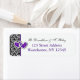 Das personalisierte Schwarz-Weiß-Damaskus-Rücksendelabel hat ein Paar lila Glitzer und Diamantschmuck, das mit den Herzen verbunden ist und der unten abgebildeten Hochzeitseinladung entspricht. ****Bitte beachten Sie, wenn Sie die Schriftart oder Größen ändern, da der Sicherheitsabstand dafür recht groß ist und Ihr Text abgeschnitten werden kann. Wenn Sie Hilfe benötigen, senden Sie bitte eine E-Mail an niteowlstudio@gmail.com.