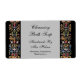 Ein bearbeitbares Seife-, Produkt- oder Handwerkslabel mit eleganten Schriftzeichen auf hellgraue und Vintage Gothic-Kunst aus einem antiken illuminierten Manuskript mit bunten Blume und Blätter auf schwarzem Hintergrund.