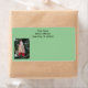 Altes Santa-Ornament am Baum hängt. Dieses Santa-Ornament war ursprünglich als Süßigkeiten für den Urlaub gedacht, gerettet als Familienurlaub-Schmuck (fast 100 Jahre alt). Personalisieren Sie Ihre Name/Adresse in der Mitte oben. Hintergrund ist hellgrün.