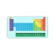 Etikett mit periodischer Tabelle der Elemente, wobei jede Elementgruppe in Regenbogenfarben markiert ist.