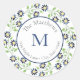 Etiketten für Indigo Watercolor Daisies Blätter Runder Aufkleber