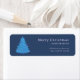 Etiqueta adhesiva para regalo de Navidad con ilustración artística de un árbol de Navidad pintado en azul y verde. Personalizable. Ilustración y diseño de Núria F.