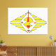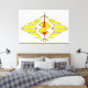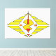 "Etude12. Gateway" ist eine abstrakte grafische Komposition mit einem kühnen geometrischen Stil. In ihrem Zentrum befindet sich eine stilisierte gelbe Scheibe, die von dynamischen roten und orangen Elementen durchschnitten wird, die Pfeilen oder Antennen ähneln. Die gesamte Komposition ist innerhalb einer Raute angeordnet, die durch parallele goldene Platten vor einem tiefschwarzen Hintergrund gebildet wird. Die visuelle Darstellung evoziert Themen wie Raumfahrttechnologie, digitale Portale und eine ausgeprägte Cyberpunk-Ästhetik.